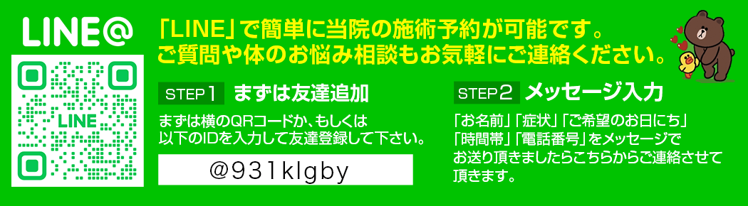 ※施術中は電話に出られませんので留守番電話にお名前と電話番号を伝言下さい。すぐに折り返し致します。