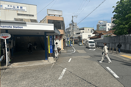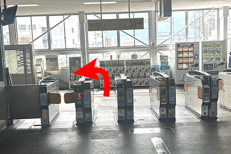 1「河内山本駅」の改札口を北出口へ(左へ)。